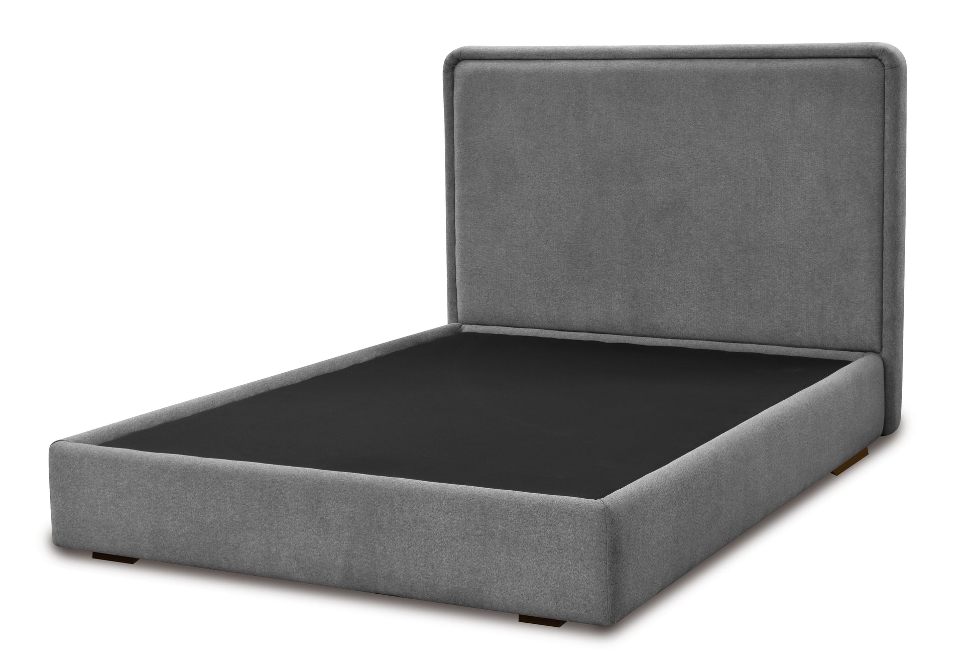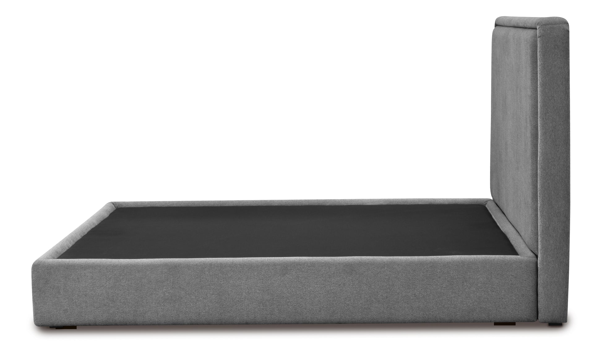 La base de cama Toni Toulouse Blanco con cabecera de estilo contemporáneo, tapizada en tela liso texturizado y acompañada de patas de madera cónicas en acabado nogal, está fabricada por artesanos mexicanos con acojinamiento de alta densidad y estructura de madera de pino certificada con el estándar internacional “Sello Verde”.