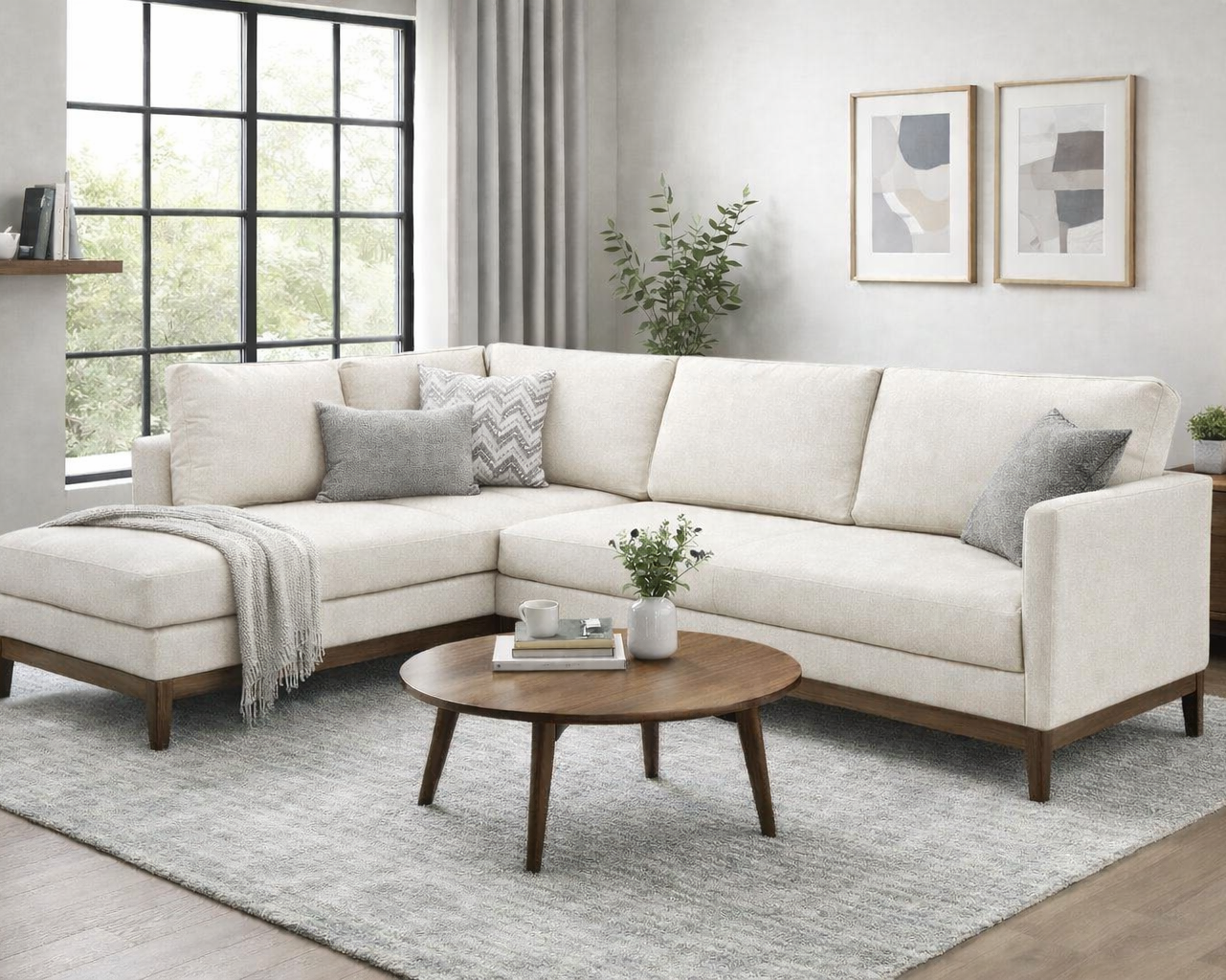 Sala modular de diseño contemporáneo, ideal para espacios amplios. Su configuración modular permite elegir orientación izquierda o derecha, adaptándose fácilmente a distintos espacios. Cuenta con una base de madera de pino de primera calidad en acabado nogal, toda su estructura de madera posee un certificación forestal internacional Sello Verde, fabricada por productores y artesanos mexicanos, con acojinamiento de alta densidad que brinda confort y durabilidad. Es una opción versátil y funcional para uso diario y reuniones familiares.