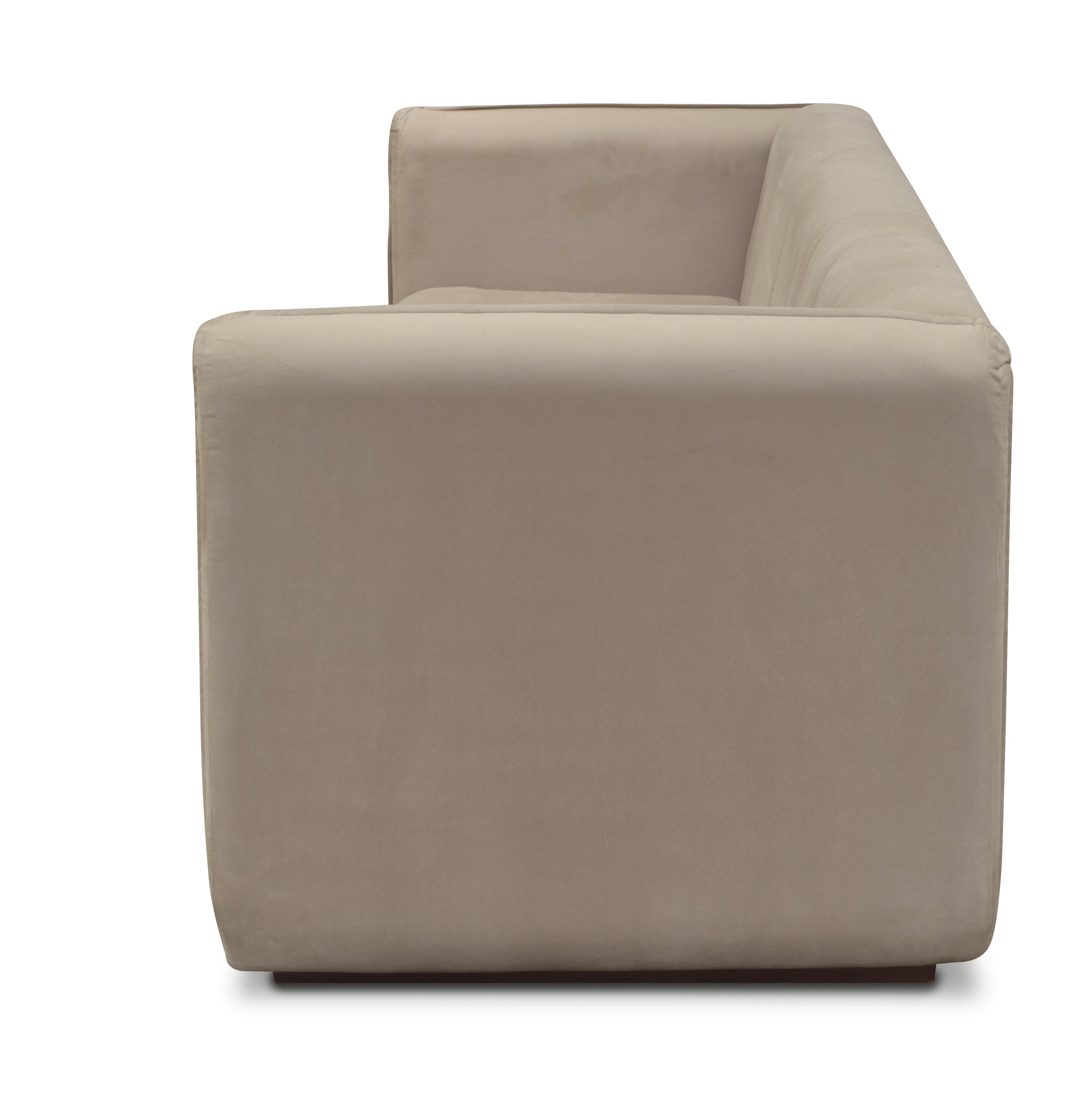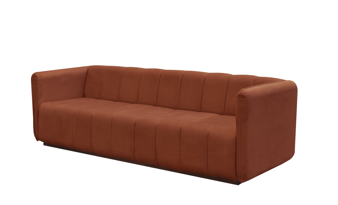El sofá Carlinini de 3 plazas, con brazos y estilo clásico, está fabricado en tela de terciopelo y cuenta con una base con marco de madera en acabado nogal. Elaborado por artesanos y productores mexicanos, utiliza materiales de alta calidad como acojinamientos de alta densidad y estructura de madera de pino con certificación forestal internacional “Sello Verde”.