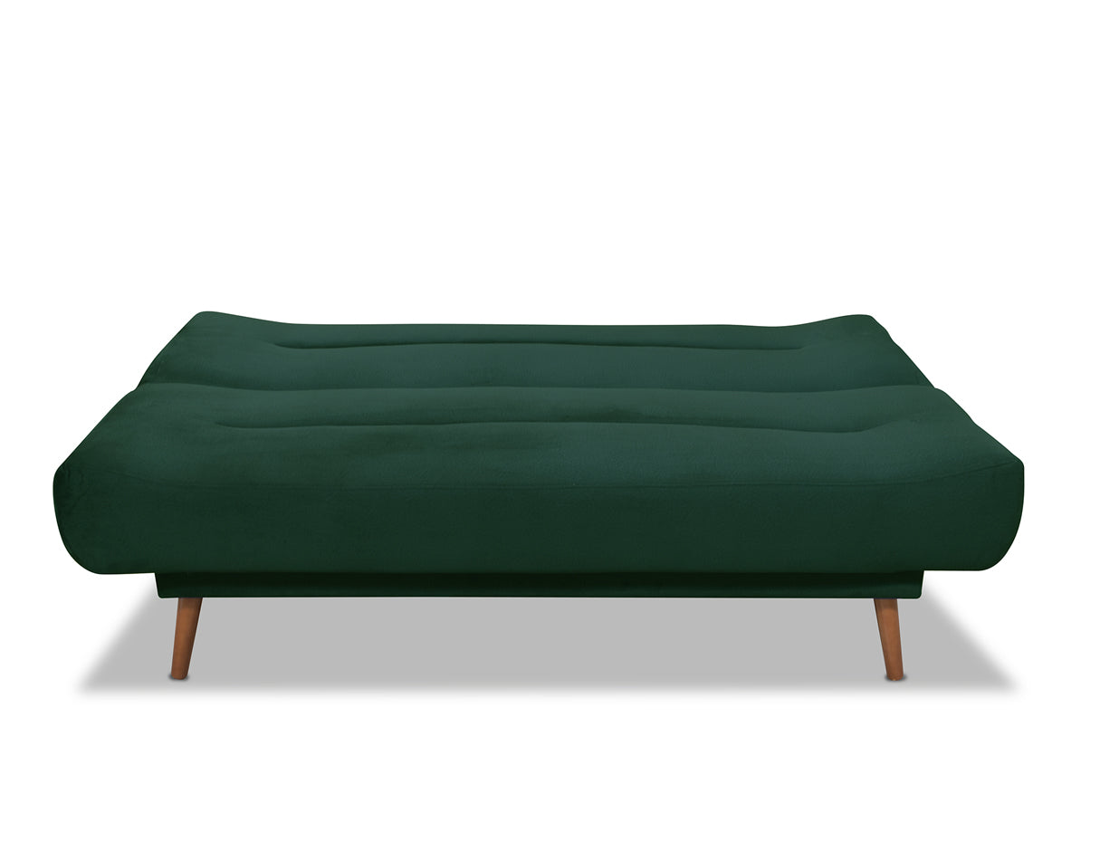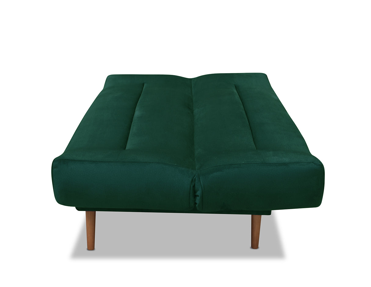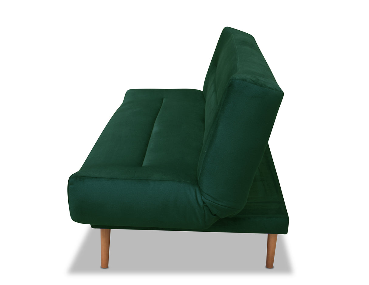 El Sofá Cama Sorrentino sin brazos es un modelo tapizado en tela de terciopelo suave con patas de madera cónicas en acabado nogal. Diseñado y fabricado por artesanos y productores mexicanos, con materiales como acojinamientos de alta densidad. Posee una estructura de madera de pino (con certificación forestal internacional llamada "Sello Verde").