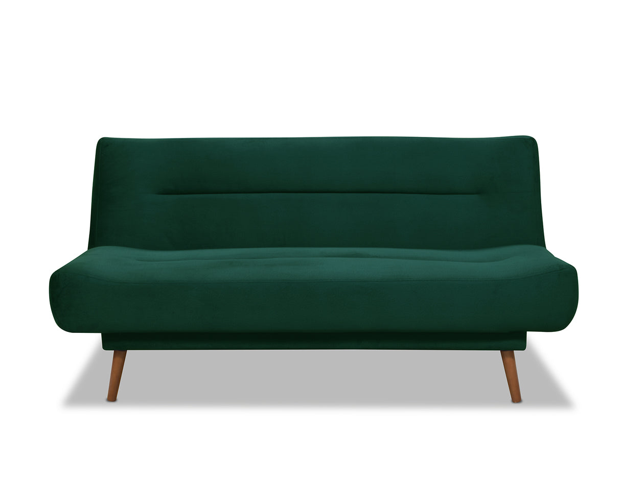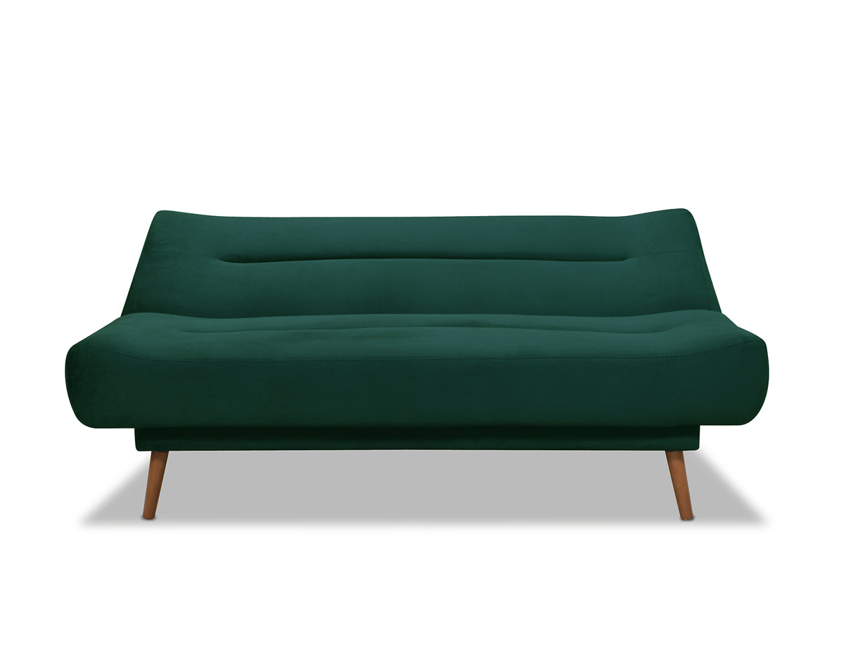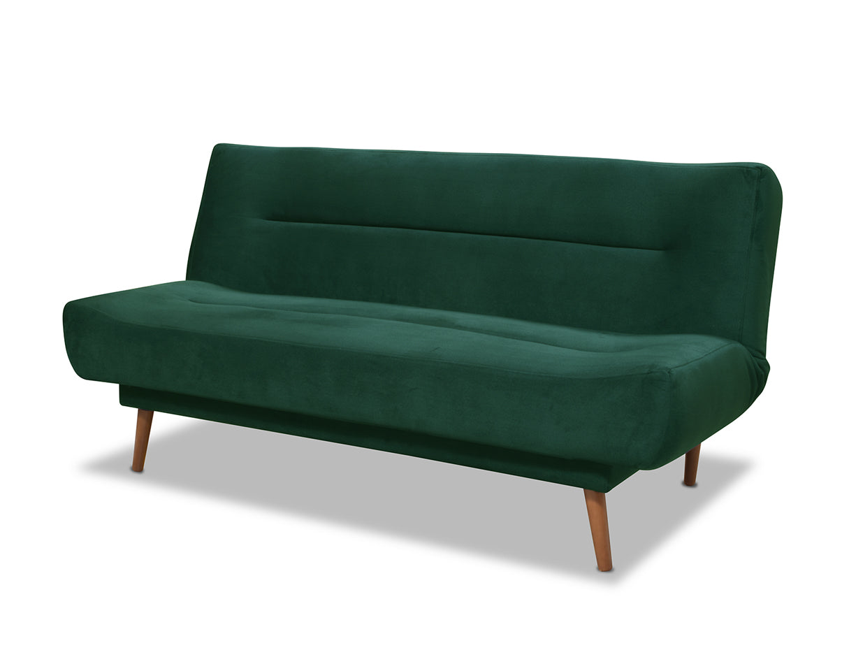 El Sofá Cama Sorrentino sin brazos es un modelo tapizado en tela de terciopelo suave con patas de madera cónicas en acabado nogal. Diseñado y fabricado por artesanos y productores mexicanos, con materiales como acojinamientos de alta densidad. Posee una estructura de madera de pino (con certificación forestal internacional llamada "Sello Verde").
